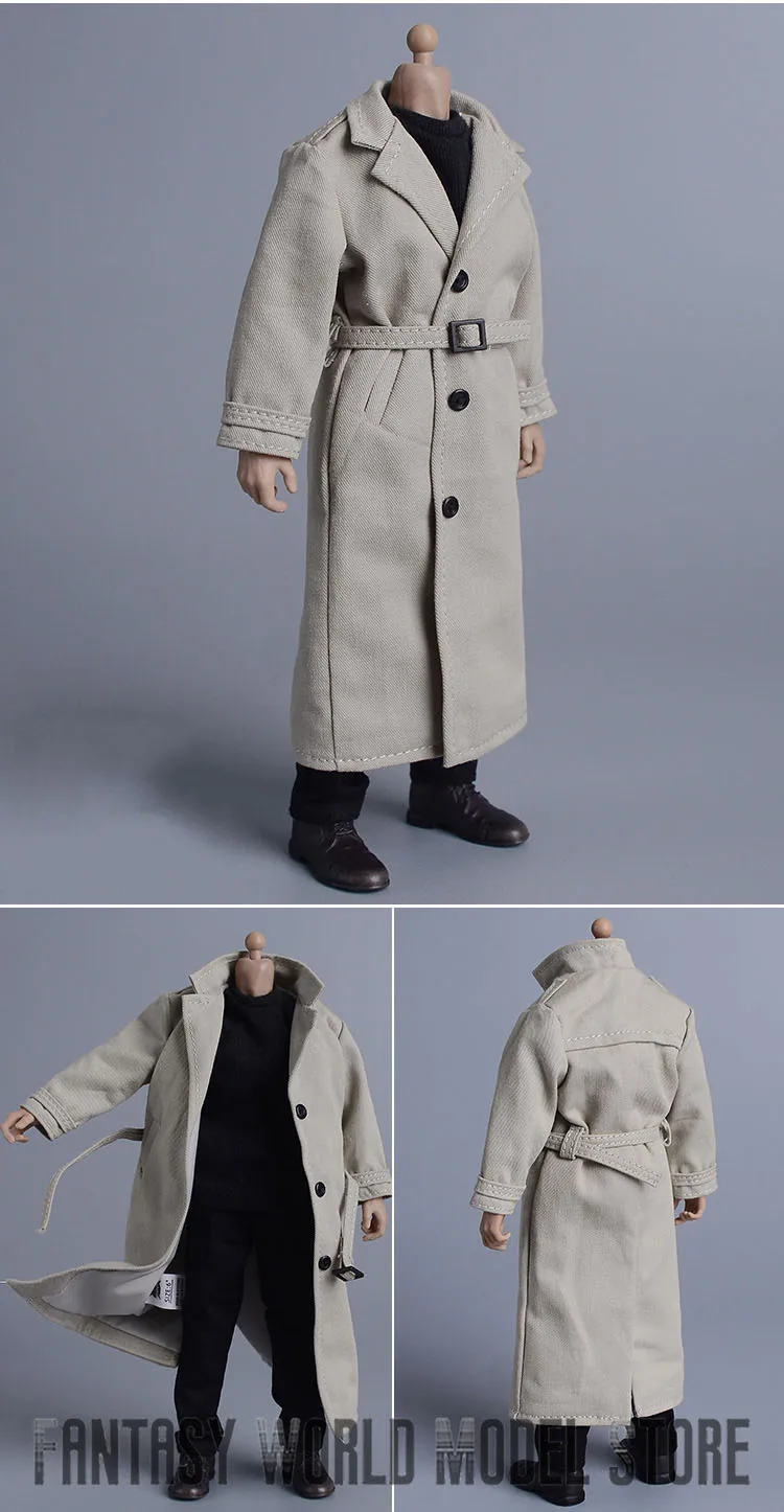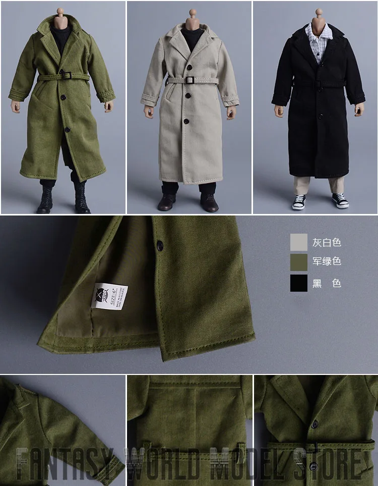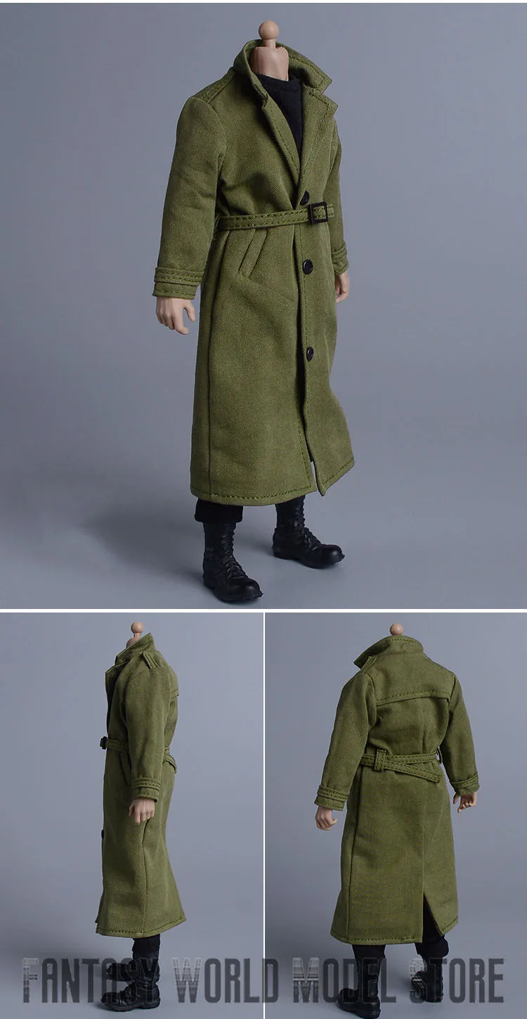ATS 1/12 Scale Trendy Male Soldier Clothing Military Uniform British Long Trench Coat 3 Colors Fit 6'' Action Figure Body Doll